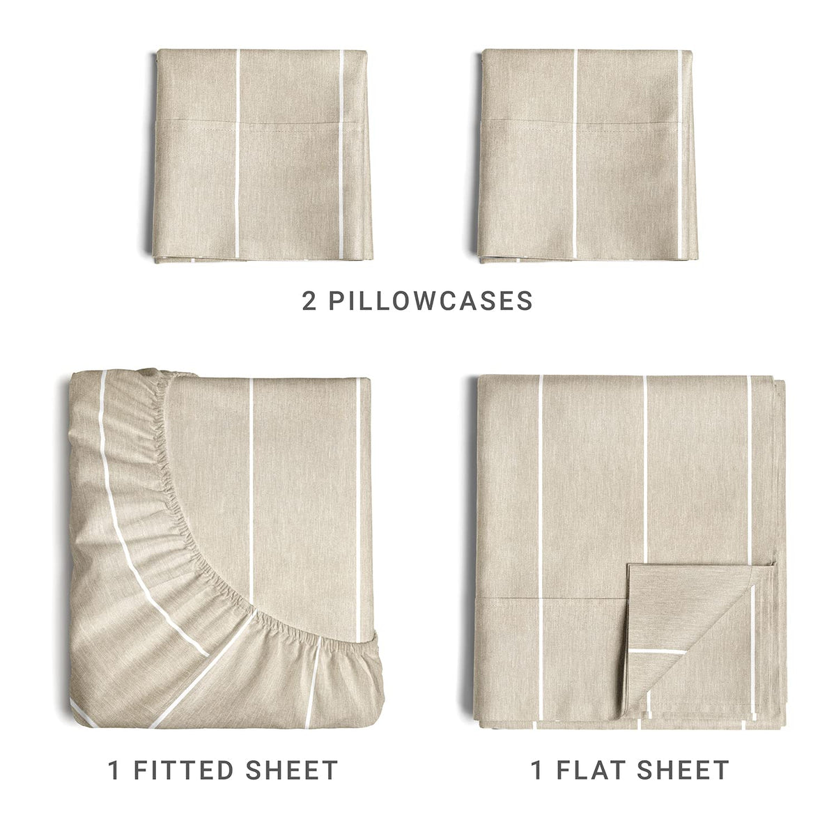 CGK Unlimited King Size 4 Piece Beige Stripes Bed Sheet Set - Breathable, Cooling, Soft & Wrinkle-Free, Deep Pockets, Hotel Luxury