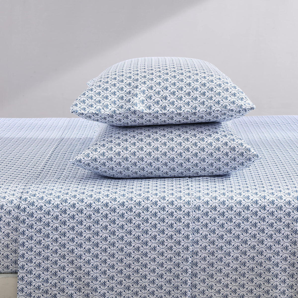 Laura Ashley Home - King Sheet Set, Soft Sateen Cotton Bedding Set - Sleek, Smooth, & Breathable, Rosemarie Blue
