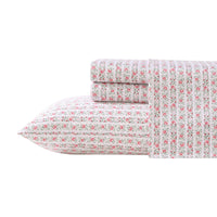 Laura Ashley - Queen Sheet Set, Super Soft Cotton Sateen Bedding Set With Matching Shams, Oeko-Tex Certified (Marta Stripe Pink,