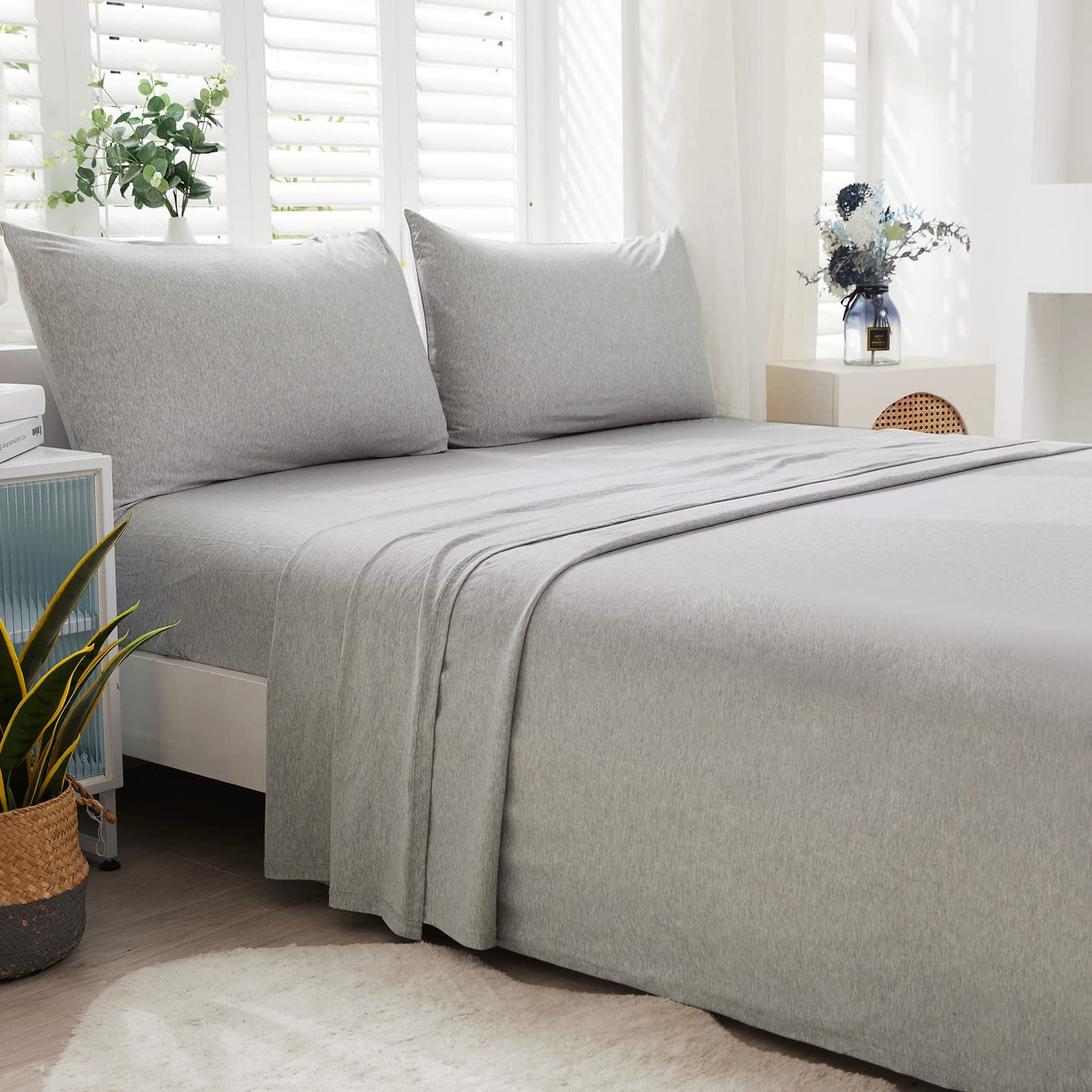 Lifetown 100% Jersey Knit Cotton Bed Sheet Ultra Soft T-Shirt Feel Bedding Sheet 1 Piece Flat Sheet Breathable Wrinkle-Free (Lig