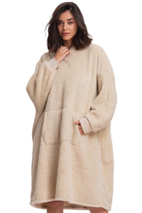Mad Dog Sherpa Fleece Wearable Blanket Hoodie For Adult Women With Long Sleeves, Cozy Hooded Poncho Jacket, Off White