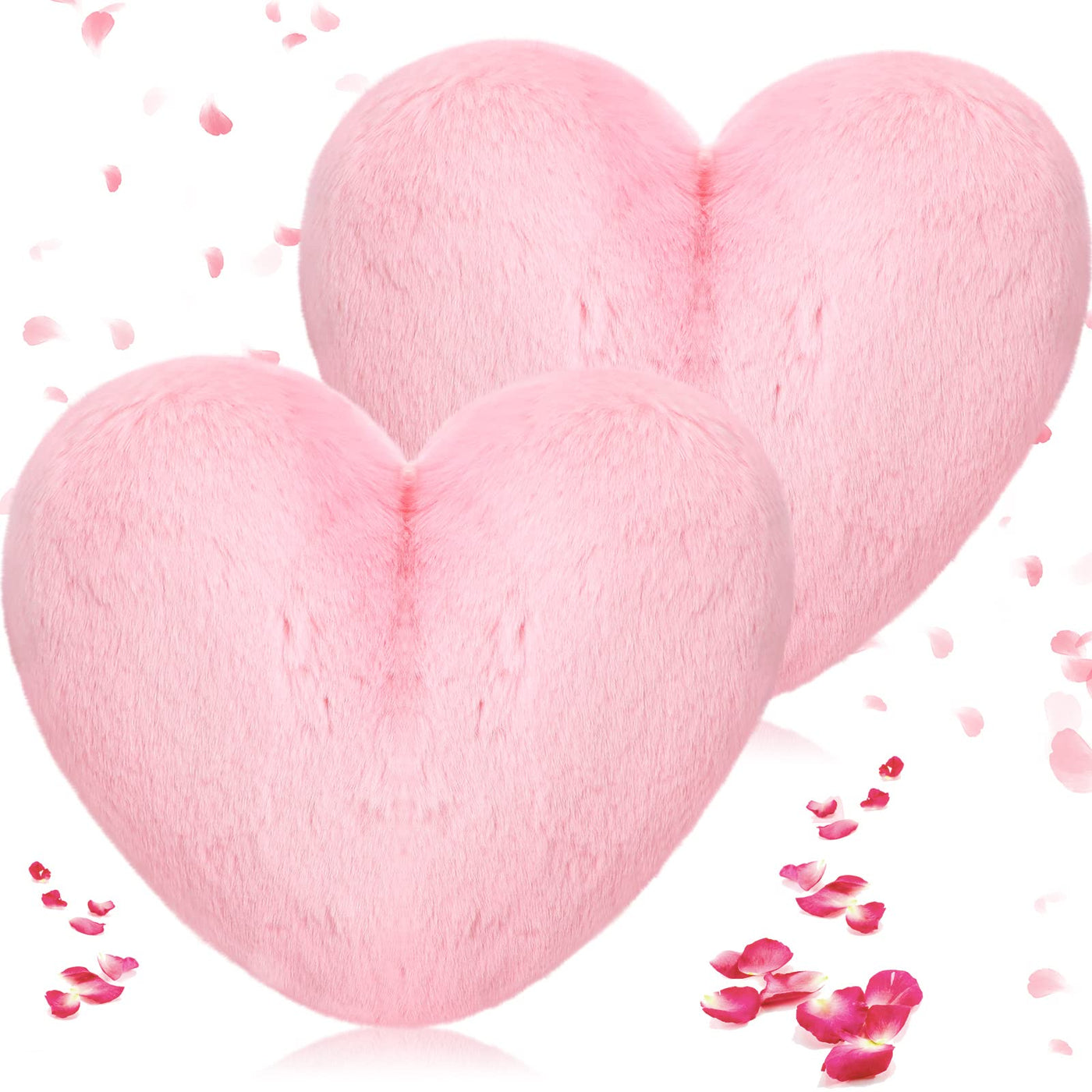 Marsui 2 Pcs Fluffy Heart Shaped Pillow Cute Heart Shaped Throw Cushion Stuffed Decorative Gift Throw Pillow for Bed Couch Sofa