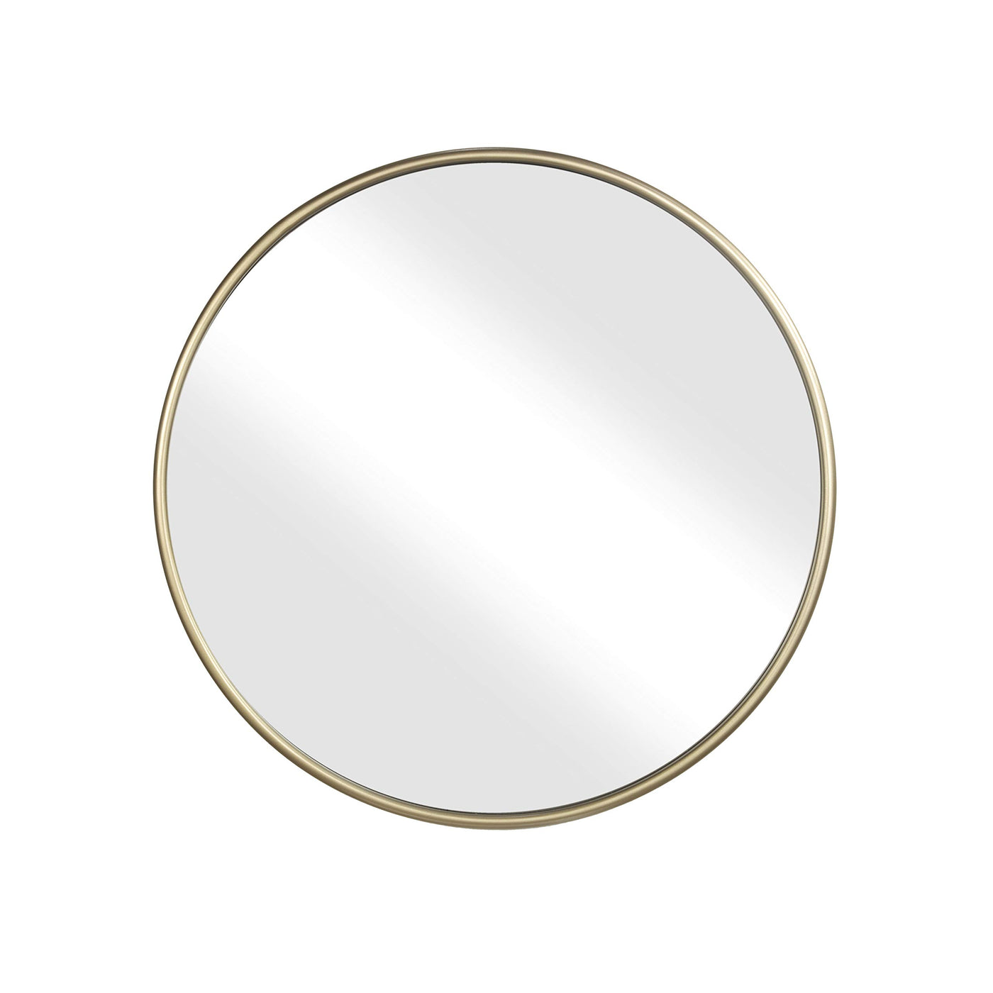 The Round Mirror Collection is a classic round circle style mirror with a slim metal frame. The metal frame is finished in Gold that is able to complement most furniture and hardware options. The large 30” diameter design helps open up any living room, bedroom, hallway, or bathroom. This mirror is designed to be wall mounted with two keyhole hooks that are provided on the back of the mirror. This mirror is intended to be hung without the use of a wire. Made in China. Product Materials: Metal, Glass. Overall Dimensions: 30” H x 30 W” x 1” D. Glass Dimensions 28” x 28”