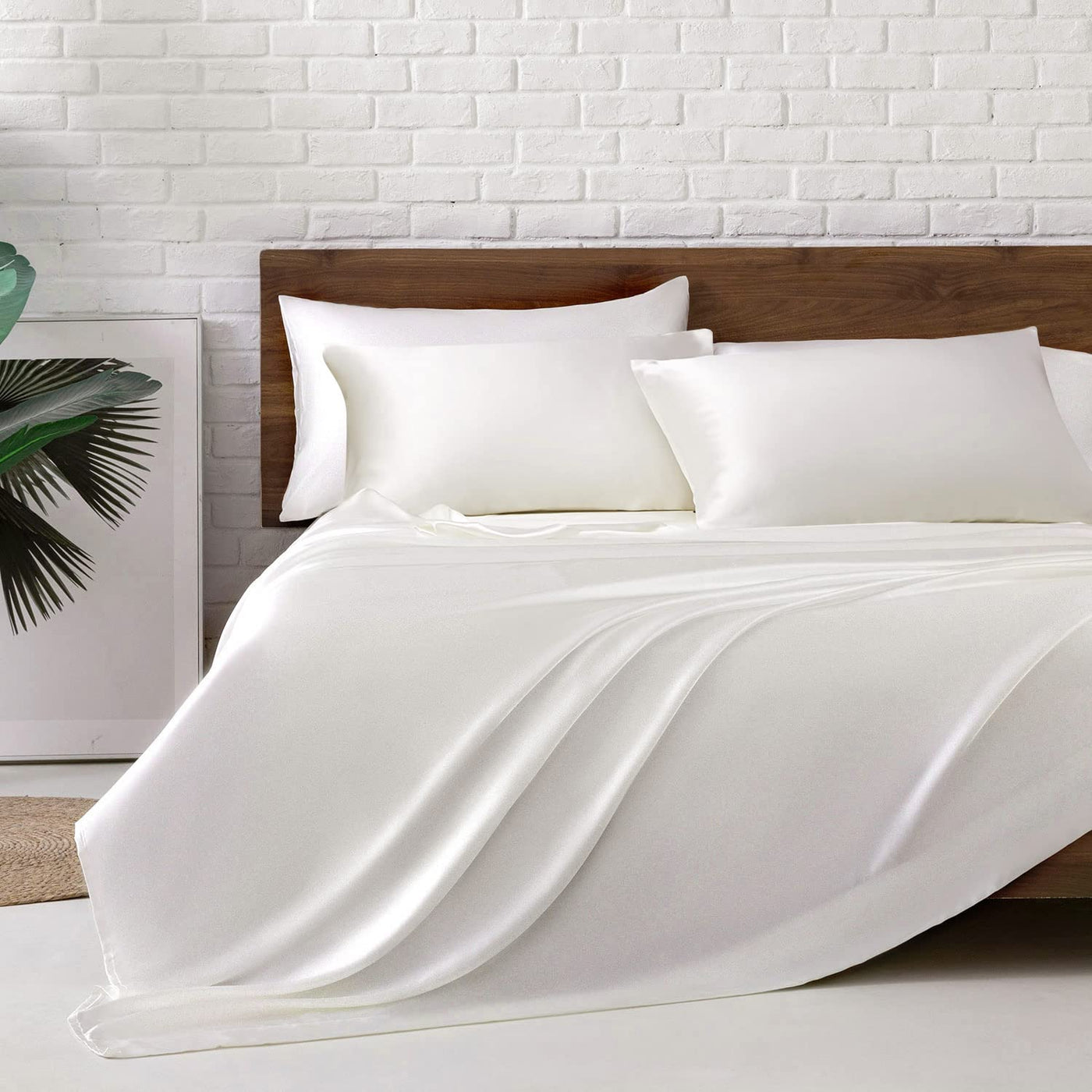 Mr&Hm Satin Bed Sheets, Full Size Sheets Set, 6 Pcs Silky Bedding Set With 15 Inches Deep Pocket For Mattress(Full, Ivory)