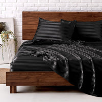 Mr&Hm Satin Bed Sheets, King Size Sheets Set, 4 Pcs Silky Bedding Set With 15 Inches Deep Pocket For Mattress(King, Black Stripe