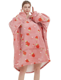 Nafleap Blanket Hoodie Women Wearable Blanket Adult Oversized Fleece Sherpa Christmas Sweatshirt Gift For Women, Strawberry