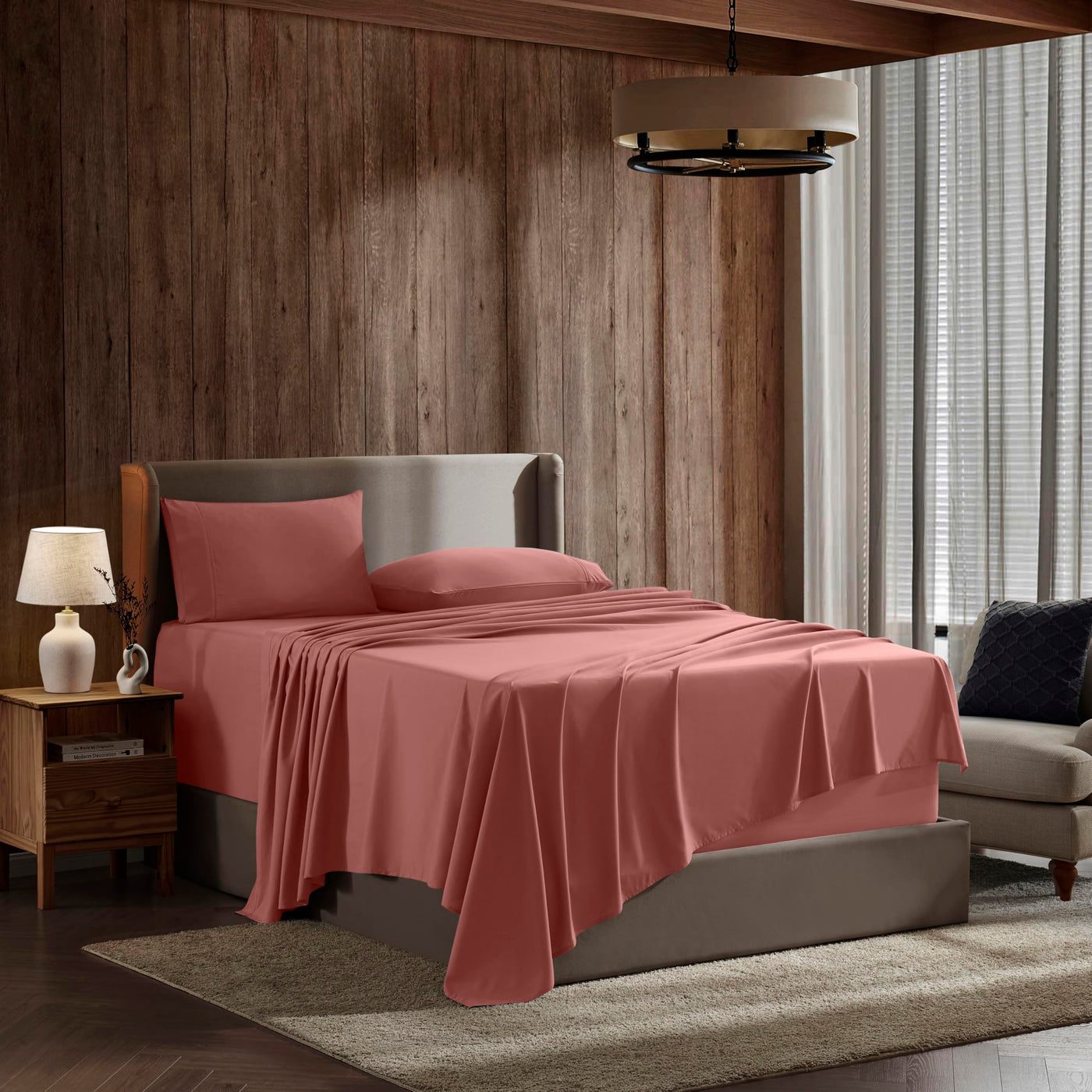Nestl Full Size Sheet Sets - 4 Piece Full Size Sheets, Deep Pocket, Hotel Luxury, Extra Soft, Breathable And Cooling, Pink Clay