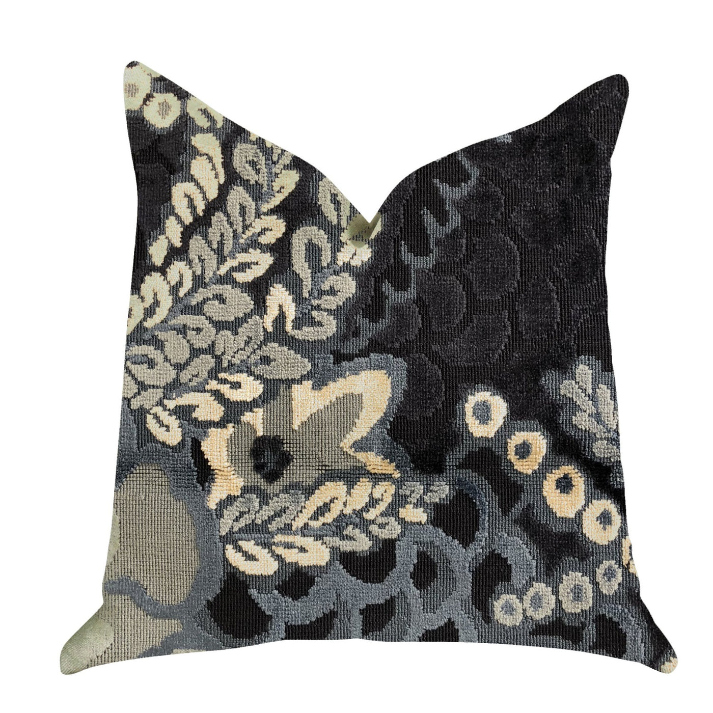 Plutus Leilani Fleurs Luxury Throw Pillow In Blue And Beige Tones - Double Sided 20' X 30' Queen