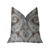 Plutus Paragon Brown, Blue And Beige Luxury Throw Pillow - Double Sided 20' X 20'