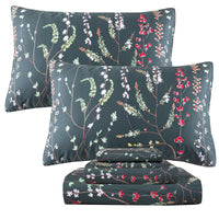 Qsh Floral Egyptian Cotton Sheets Queen Size - Elegant Navy Botanical Pattern Printed Bedding Sheets Queen Size Bed Extra Soft A
