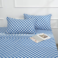 Color: Blue And White Checkerboard Grid. Package Include: Flat Sheet 1 Fitted Sheet 1 Standard Pillowcases 2 Size: Queen Size.