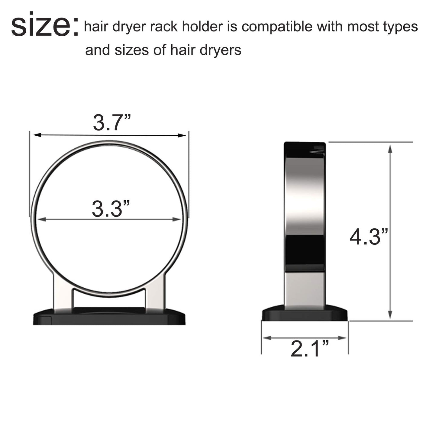Q: What are the dimensions and weight capacity of the hair dryer holder?A: The RAIKEDR Hair Dryer Holder measures L 3.7” x W 2.1” x H 4.3” and has a capacity of up to 6.6 lbs, making it suitable for most hair dryer models.