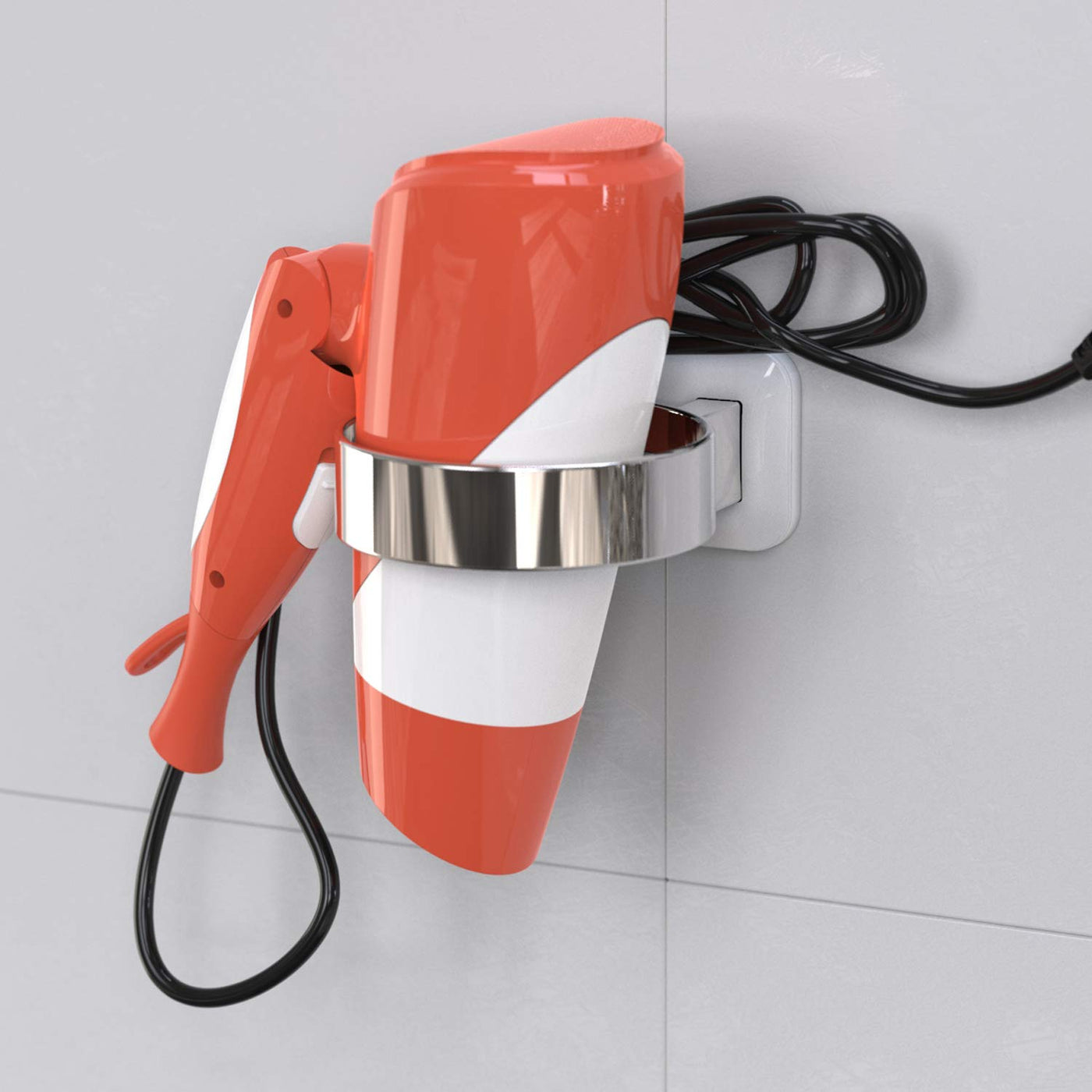 Q: Is the installation of the hair dryer holder difficult?A: No, the installation is easy and requires no drilling. Just ensure that the wall is clean and dry before sticking the bracket on, and the super sticky glue will hold the holder securely.