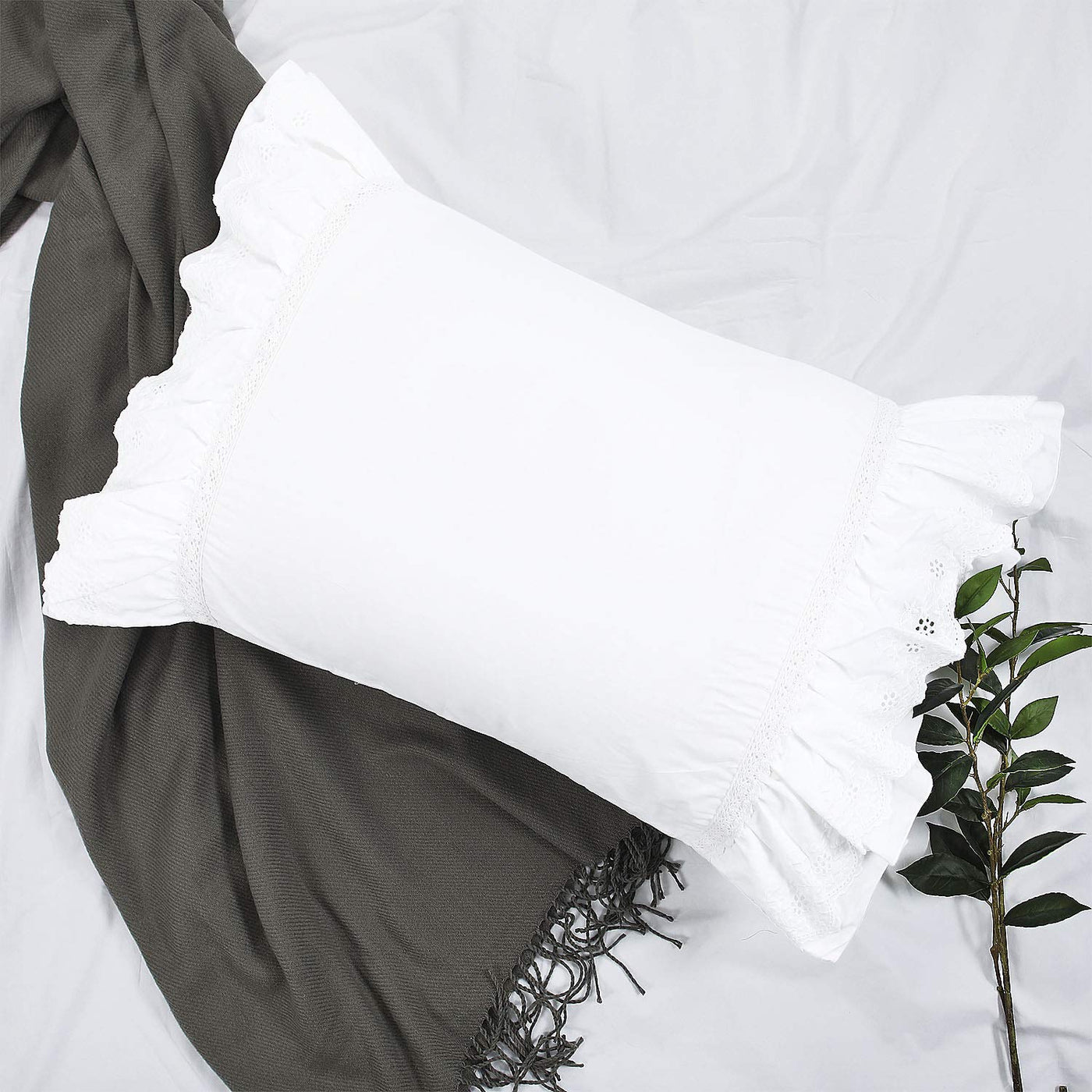 Eyelet Pillow Shams:Bright White Ruffled Pillow Shams Queen 20 X 30' Set Of 2,(No Pillow Inserts Included Only Pack 2 Pillowcases)Shabby Chic Pillow Shams: Perfect Goes With Pretty Cute Romantic Country French Farmhouse Rustic Cottage And Shabby Chic Vintage Victorian Bedding Set Bedroomoriginal Design & Unique Workmanship:Pretty Double Layered Snow White Ruffles Edges And Exquisite Floral Eyelet Detail Ebroidered Trim Handwork Well-Stitched Are Not Only Elegant But Also Durablenatural Cotton Pillow Shams:100% Natural Cotton'S Breathable Healthy Soft Touching Features Are The Guarantee Of A Cozy Sleep,Especially To Kids Girlssoft Pillowcase:Split Flap In The Middle Of The Backside Pillow Shams For Putting In The Pillow Easily;Machine Washable But May Winkle Since They Are 100% Cotton,But They Will Be Pretty Again After Ironing If It Is Needed