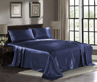 Satin Sheets California King [4-Piece, Midnight Blue] Hotel Luxury Silky Bed Sheets - Soft Microfiber Sheet Set, Wrinkle, Fade,