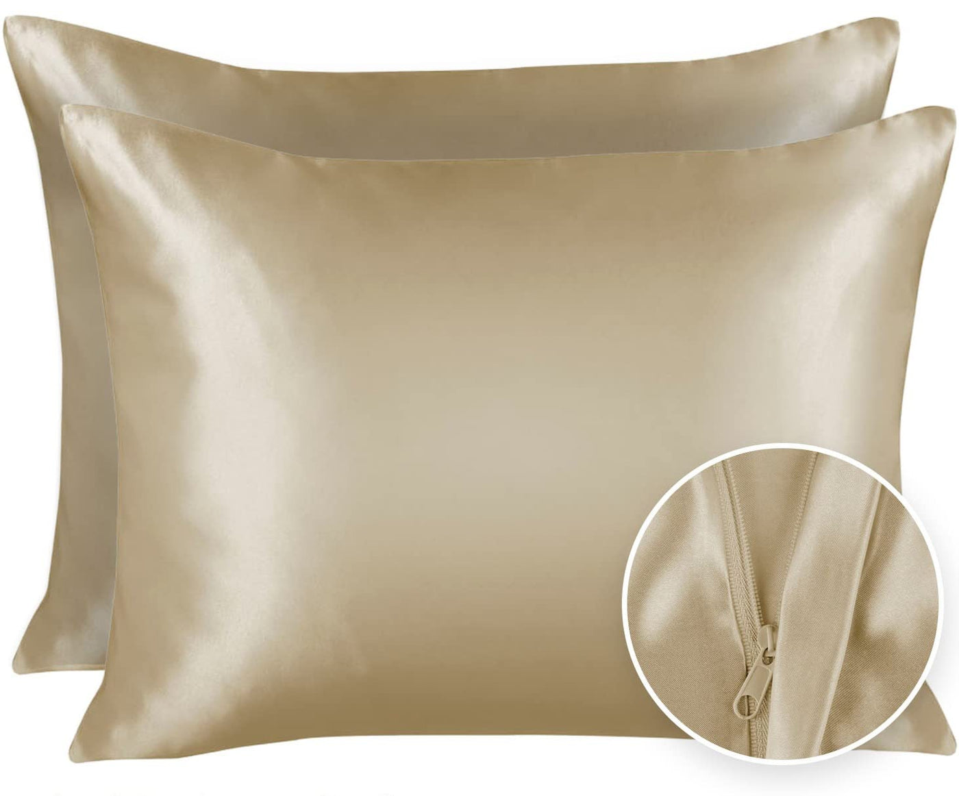 Shopbedding Luxury Satin Pillowcase For Hair - Queen Satin Pillowcase With Zipper, Champagne (Pillowcase Set Of 2) - Blissford