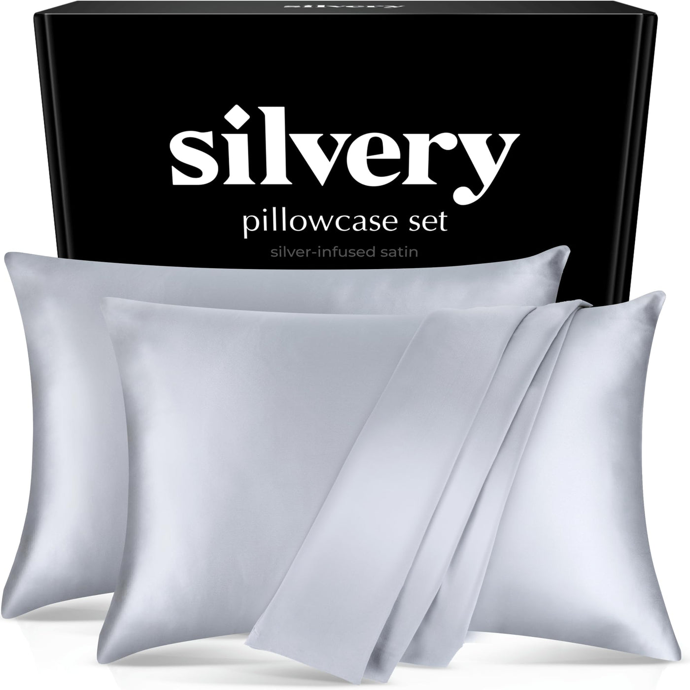 Silver Infused Satin Pillowcases Set - 2 Pack Silky Soft Cooling Pillow Cases With Self-Cleaning Silvery Technology For Hygienic