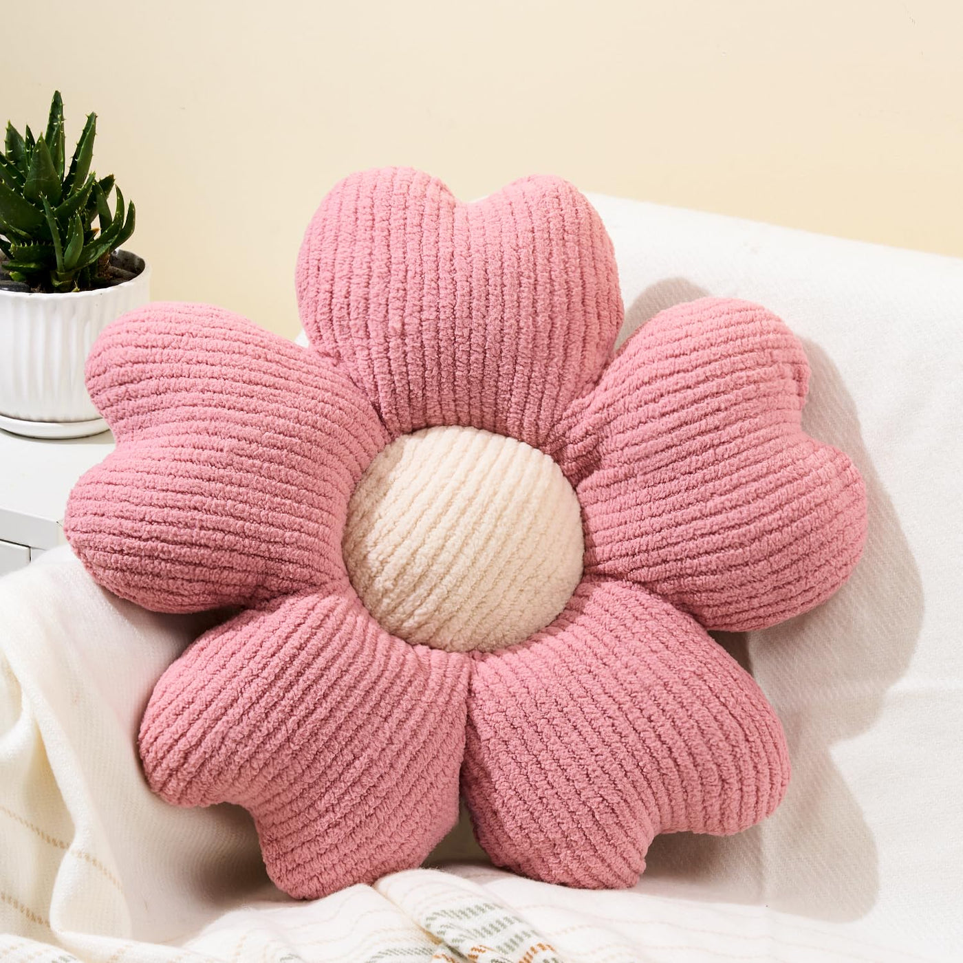 Sioloc Flower Shaped Throw Pillow, Fun Daisy Pillow, 19.7' Pink Flower Pillow Cute Decorative Seat Cushion Aesthetic Flower Plu