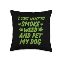 Smoke Weed Pet My Dog Cannabis Marijuana 420 Thc Stoner Gift Throw Pillow