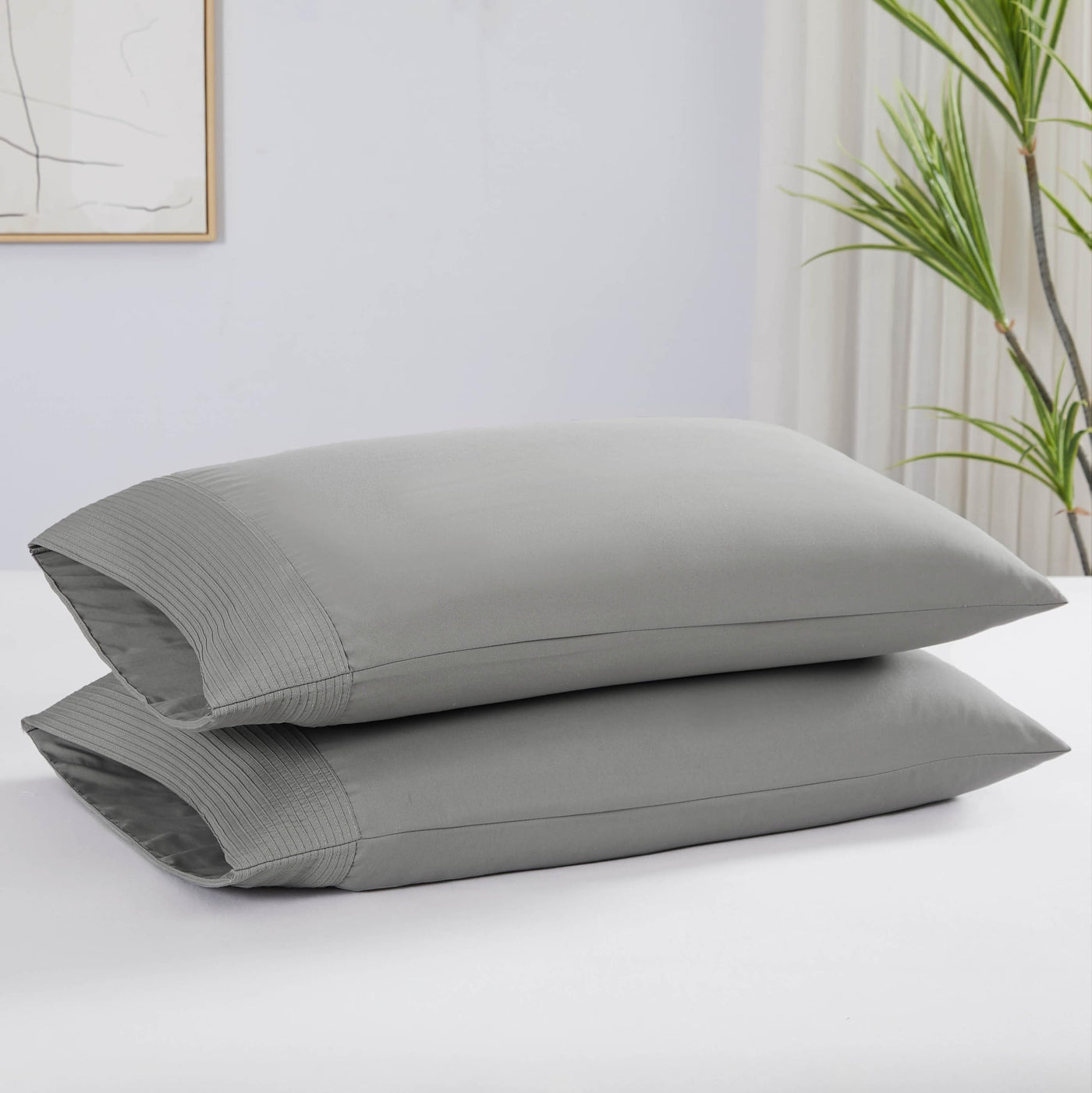 Southshore Fine Living, Inc. Pleated Grey Pillow Cases Queen Size Set Of 2, Luxurious Brushed Microfiber Pillowcases For Full, T