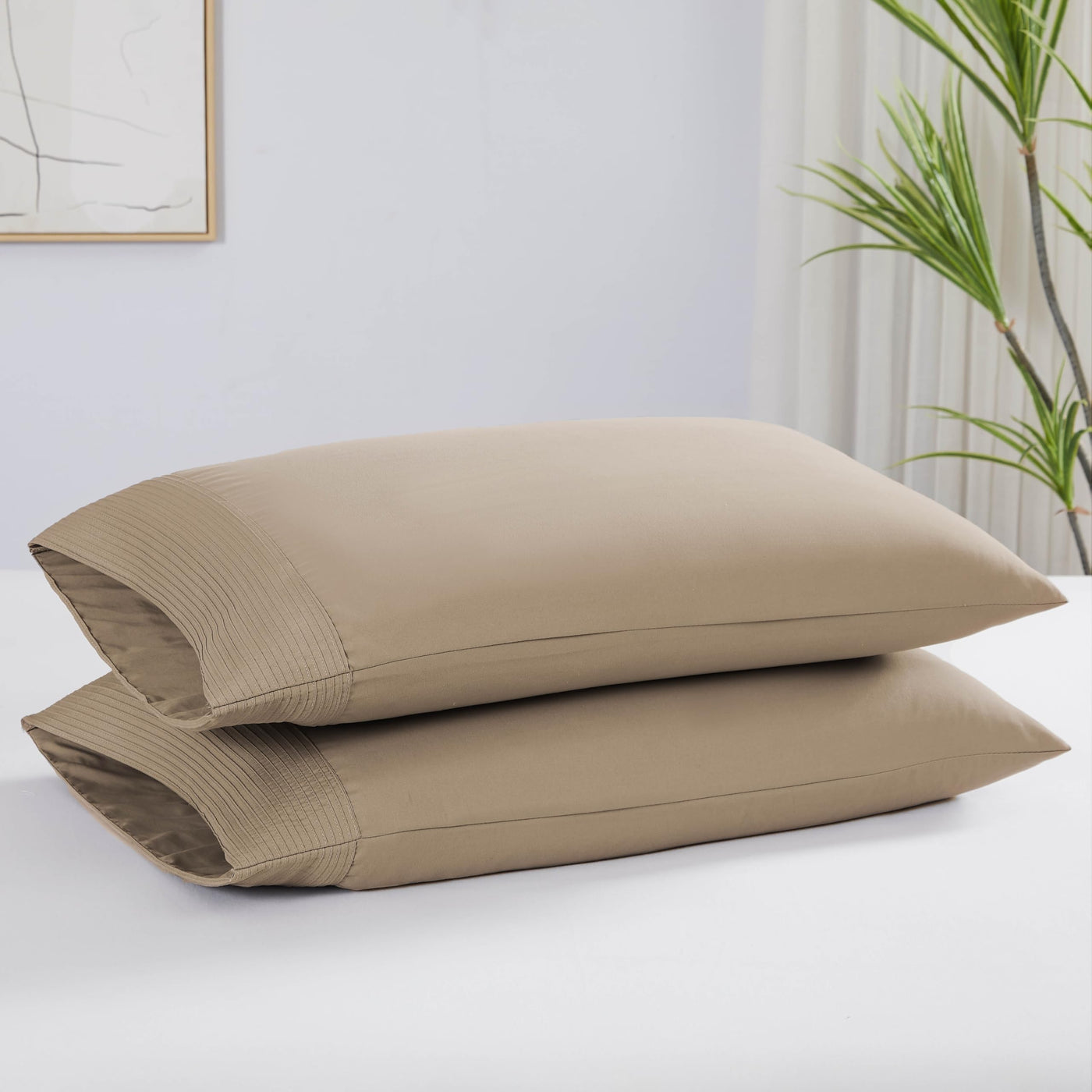 Southshore Fine Living, Inc. Pleated Taupe Pillow Cases Standard Size Set Of 2, Luxurious Brushed Microfiber Pillowcases For Ful