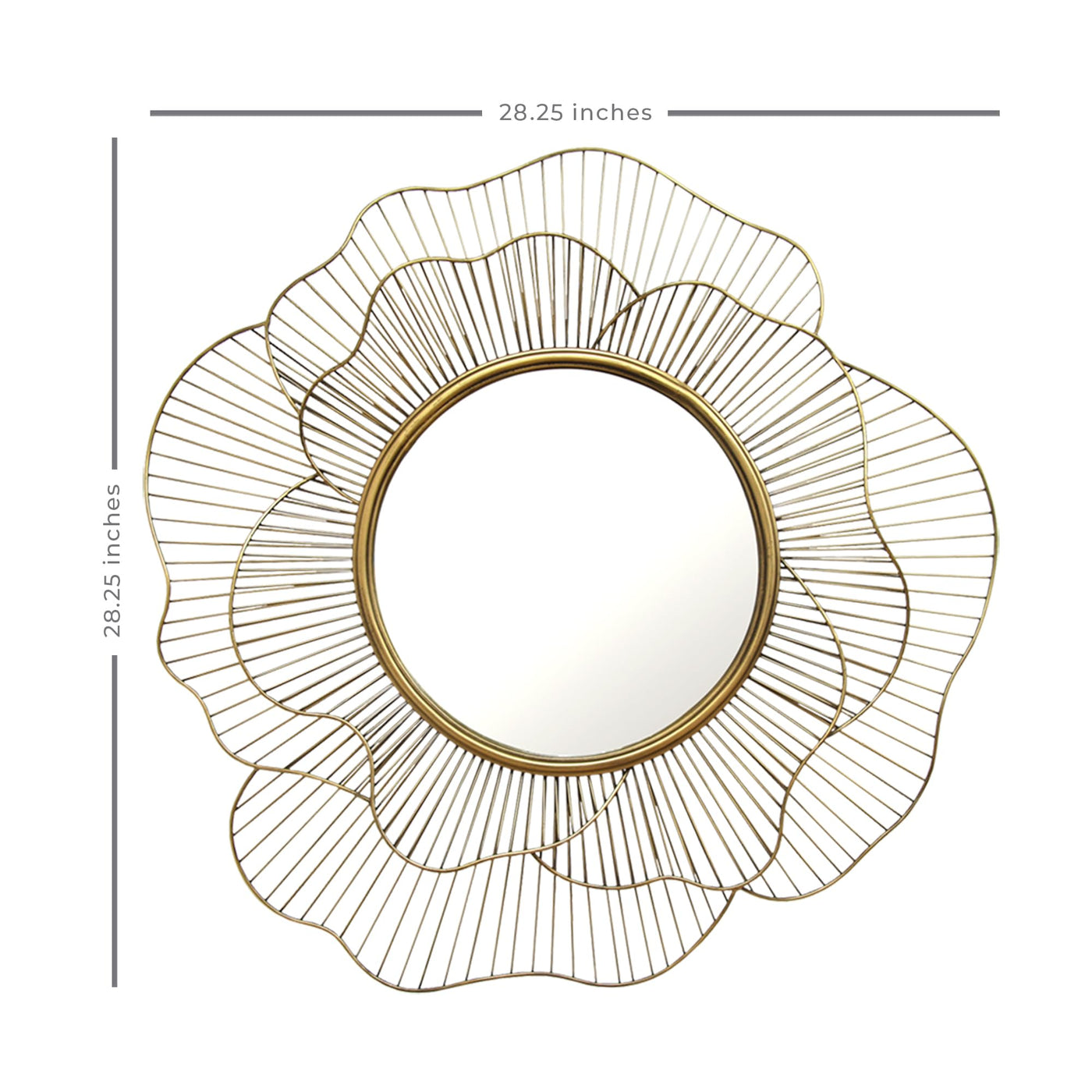 Thinking of decorating your home with a nature-themed mirror?Wall mirrors come in a variety of shapes, sizes, and designs. Aside from sprucing up your bare wall, a decorative wall mirror also helps bring refreshing vibes and positive energy into your living space.Flower-themed mirrors, in particular, make a stylish statement in your home. They let everyone know how serious you are about incorporating nature elements into your interiors.Add depth and style to any plain-looking room with the Stratton Home Decor Stella Wall Mirror.Elevate the look and feel of your indoor space by displaying this wall mirror. It shows off a large round mirror, which is bordered by a metal frame that looks like a fully bloomed flower. The whole piece is given a gold color, which pops out with its matte finish.Measuring 28.25 W x 2.50 D x 28.25 H inches, this wall decoration is made of metal, MDF, and glass.Need more time to decide? Here are more reasons to love this handcrafted wall mirror:- Sturdy, durable build- Hangs vertically via its keyhole attachment- Mirror face measures 12.75 inches in diameterIt's time to give your bare wall a makeover. Add the Stratton Home Decor Stella Wall Mirror to your cart NOW!