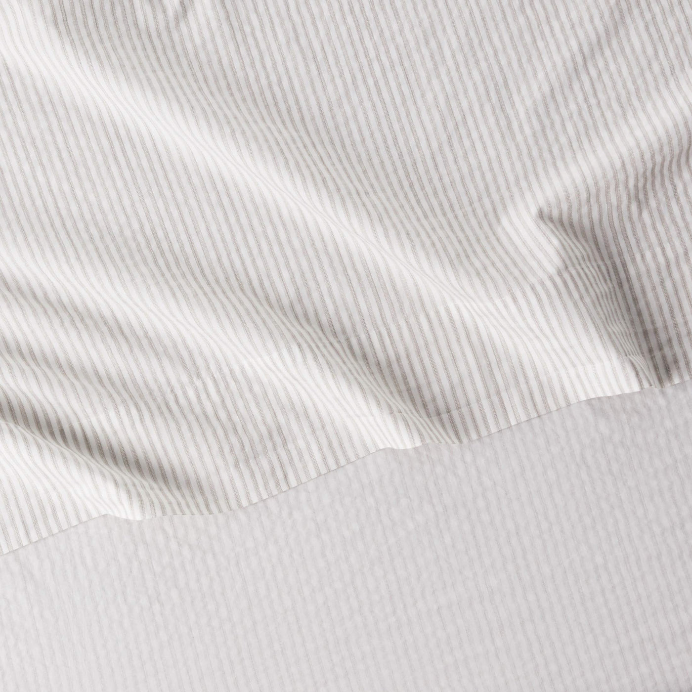 Stylish Design: The Paloma Sheet Set features a sophisticated light grey striped pattern, adding a modern yet classic touch to your bedding ensemble.