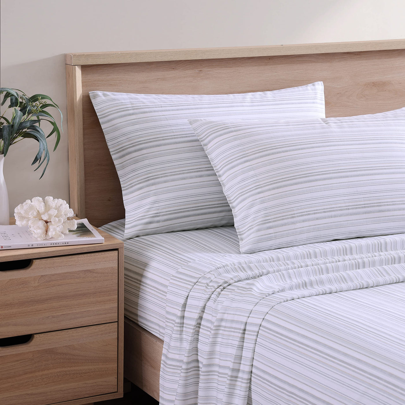 Tommy Bahama - Queen Sheets, Cotton Percale Bedding Set, Crisp & Cool, Stylish Home Decor (Kahanu Stripe Grey, Queen)
