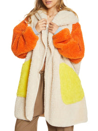 Unhide Shleepy Faux Fur Robe - Lightweight, Extra Soft, & Warm Wearable Blanket - Machine Washable - Large Patchwork Orange