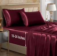 Vacvelt 4Pcs Extra Deep Pocket Satin Sheets King Size Bed Set, Burgundy Satin Sheet Set Fit 18-24 Inch Deep Pocket Mattress, Sil