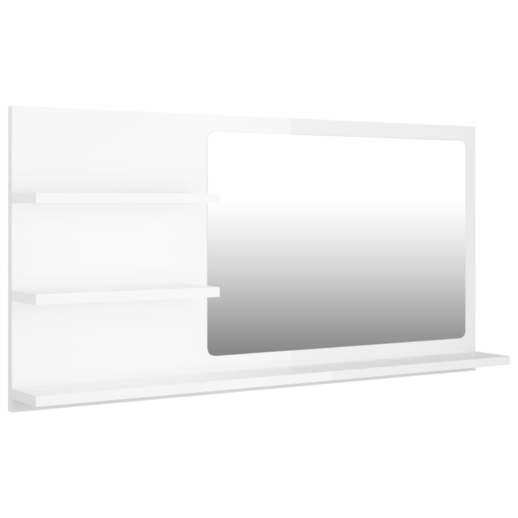 Vidaxl Engineered Wood Bathroom Mirror With Shelves, High Gloss White Finish, Stable And Durable, Easy To Clean, Modern Design For Contemporary Bathrooms