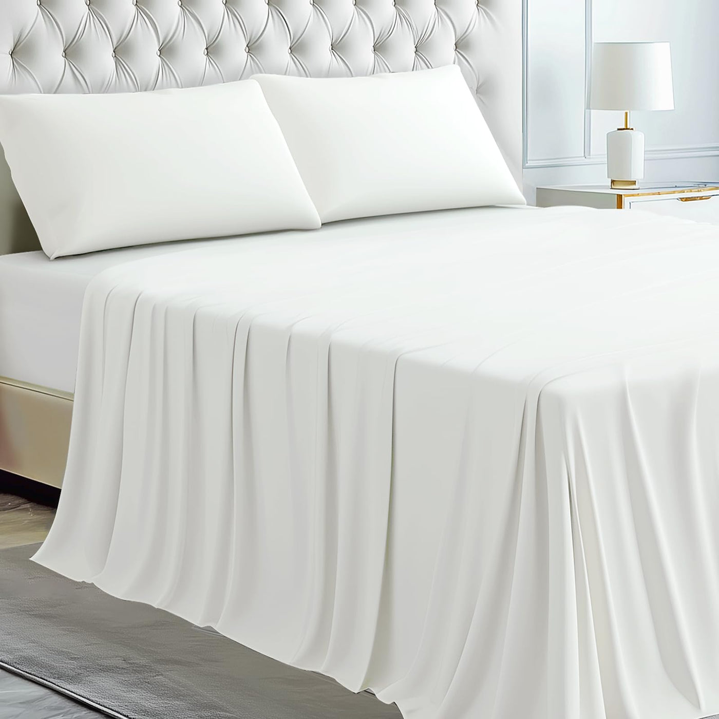Viscose Derived From Bamboo, Soft Cooling Bedding With Silky Smooth Finish,Extra Deep Pocket, Hypoallergenic, Breathable, 4 Piec