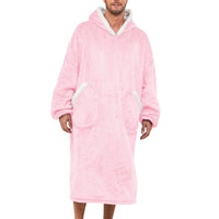 Wearable Blanket With Plush Pockets, Oversized Sherpa Thick Warm Hoodie Blanket Big Sweatshirt, Gifts For Women Men Pink Extra L