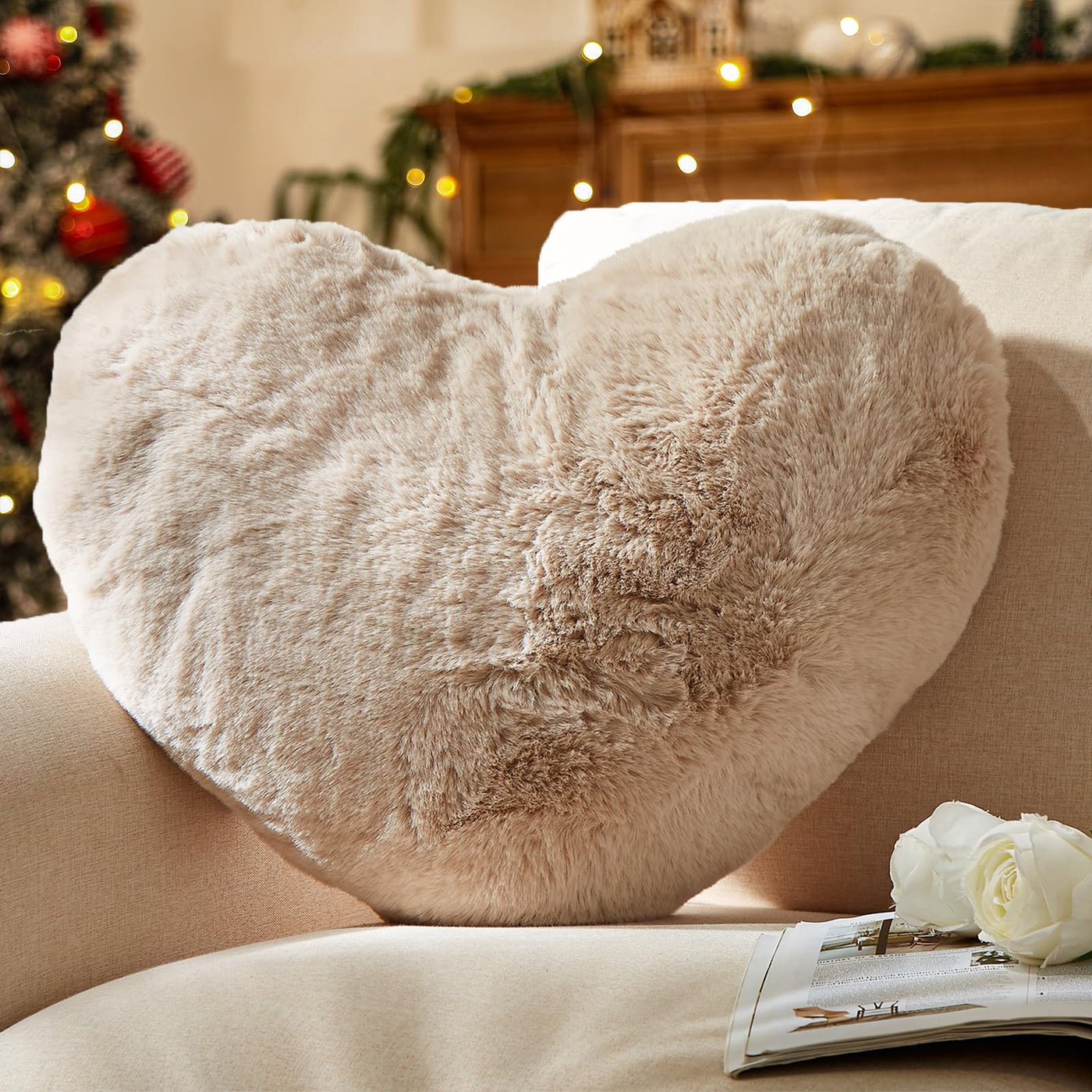 YRXRUS Heart Pillow, Beige Heart Pillows, Love Pillow Gifts, 14X17 Inch Large Heart Shaped Pillows, Faux Rabbit Fur Coquette Roo