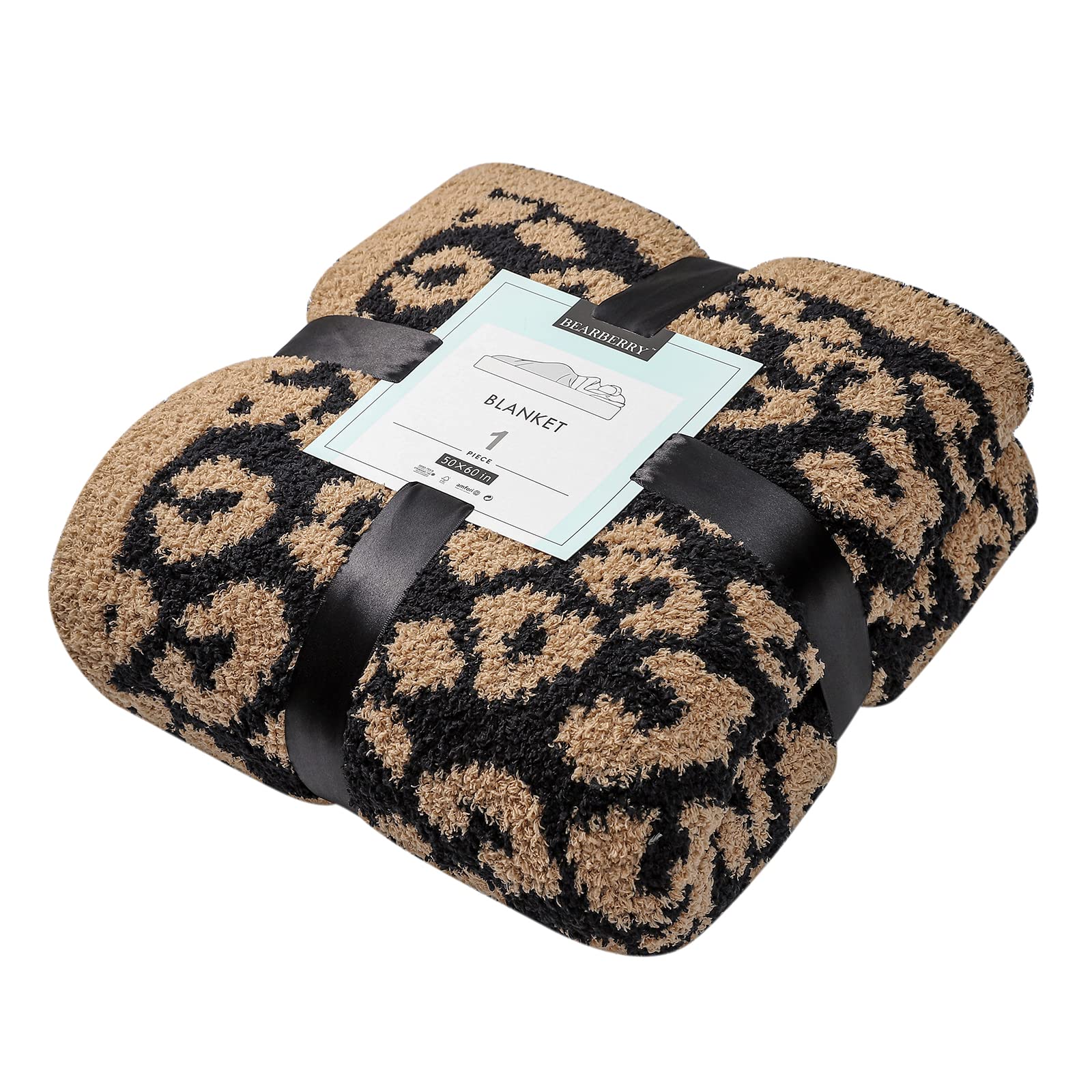 Bearberry Fuzzy Leopard Knitted Throw Blanket Soft Cozy Warm Microfiber Blanket For Couch Sofa Bed Travel (Leopard, 50'X60')