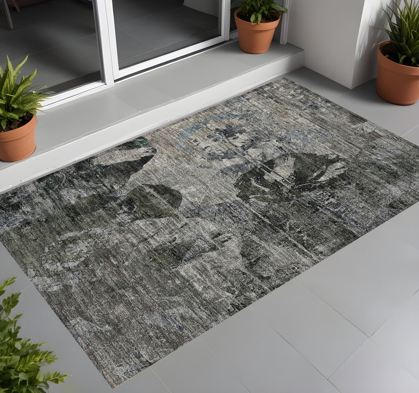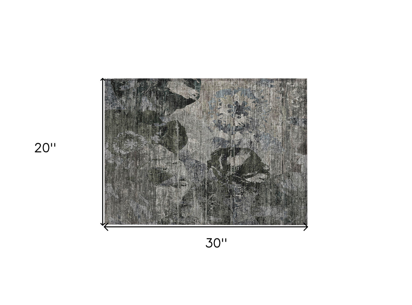 2' X 3' Gray Dark Green And Black Floral Washable Non Skid Indoor Outdoor Area Rug