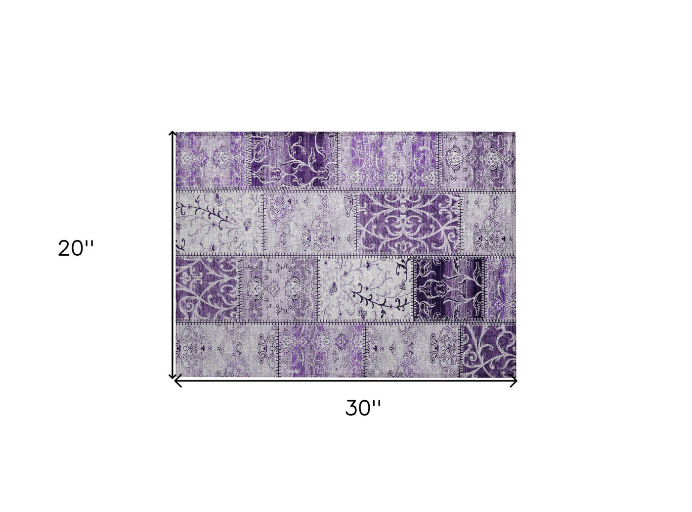 2' X 3' Purple Patchwork Washable Non Skid Indoor Outdoor Area Rug