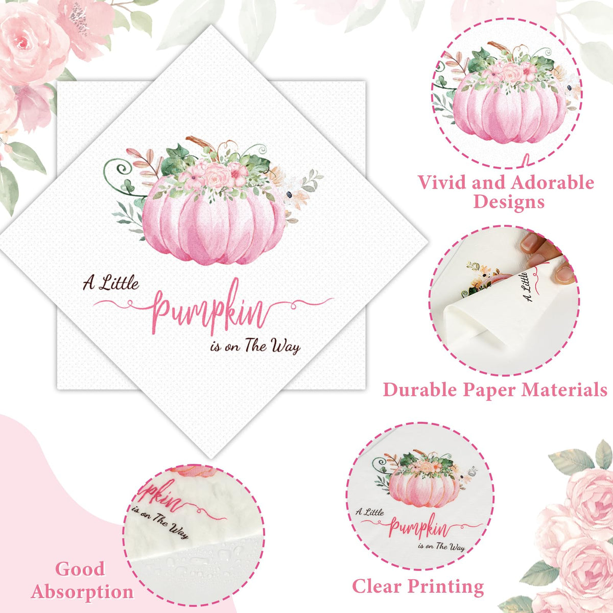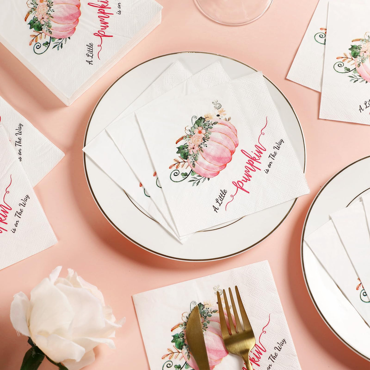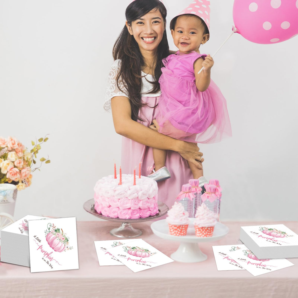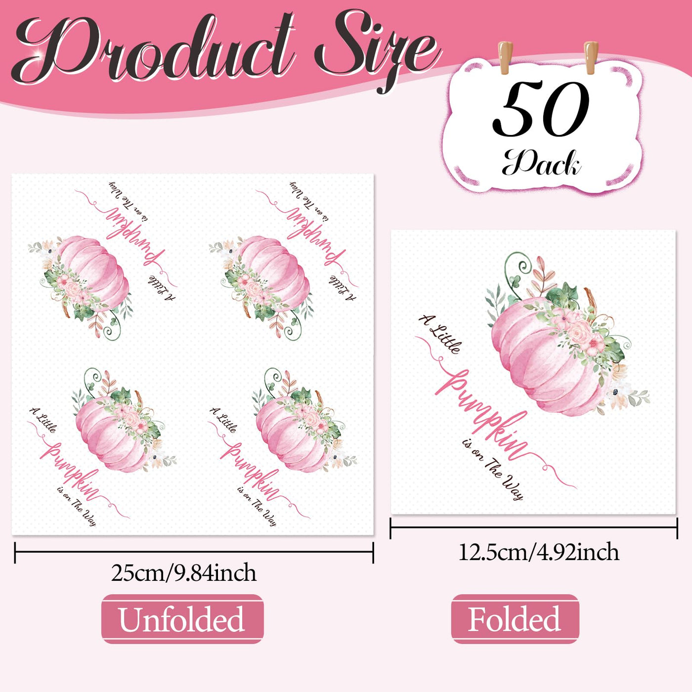 50 Pack Pink A Little Pumpkin Is On The Way Paper Napkins Little Pumpkin Baby Shower Disposable Hand Towel Guest Napkin For Girl