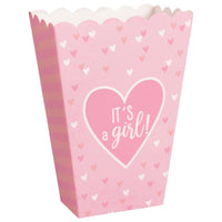 Fill Our Pink It'S A Girl Baby Shower Popcorn Boxes With Fun Snacks! Features A Pink Paper Popcorn Box With Pink Polka Dots And The Message ''It'S A Girl''. Boxes Shipped Flat And Require Simple Assembly. Measures 5. 25'' X 3. 75''. Includes 20 Boxes Per Package.