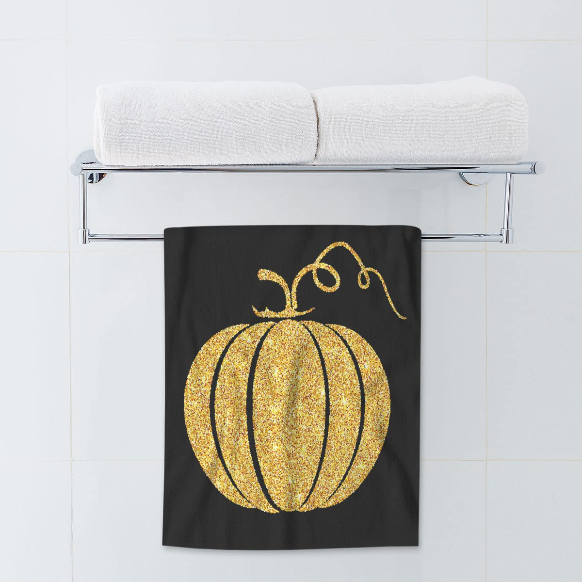 Aoyego Gold Glitter Pumpkin Bath Towel Thanksgiving Day Halloween Autumn Festival Beach Bath Towels Soft Microfiber Yoga/Golf/Sw