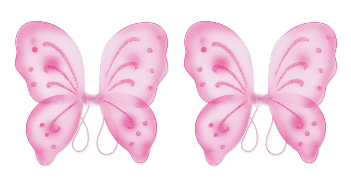 Beistle 60647-P Nylon Fairy Wings. The Package Contains 2 Pink Nylon Fairy Wings. The Wings Are Shaped With Wire And Covered With Pink Nylon Fabric. The Wings, Which Measure Approximately 15 Inches Long By 15.5 Inches Wide, Have Marabou In The Center Of Them And Glitter Accents On The Wings. Elastic Loops Are Attached For Wearing. One Size Fits Most. Great For A Princess Party Or As A Halloween Accessory!.