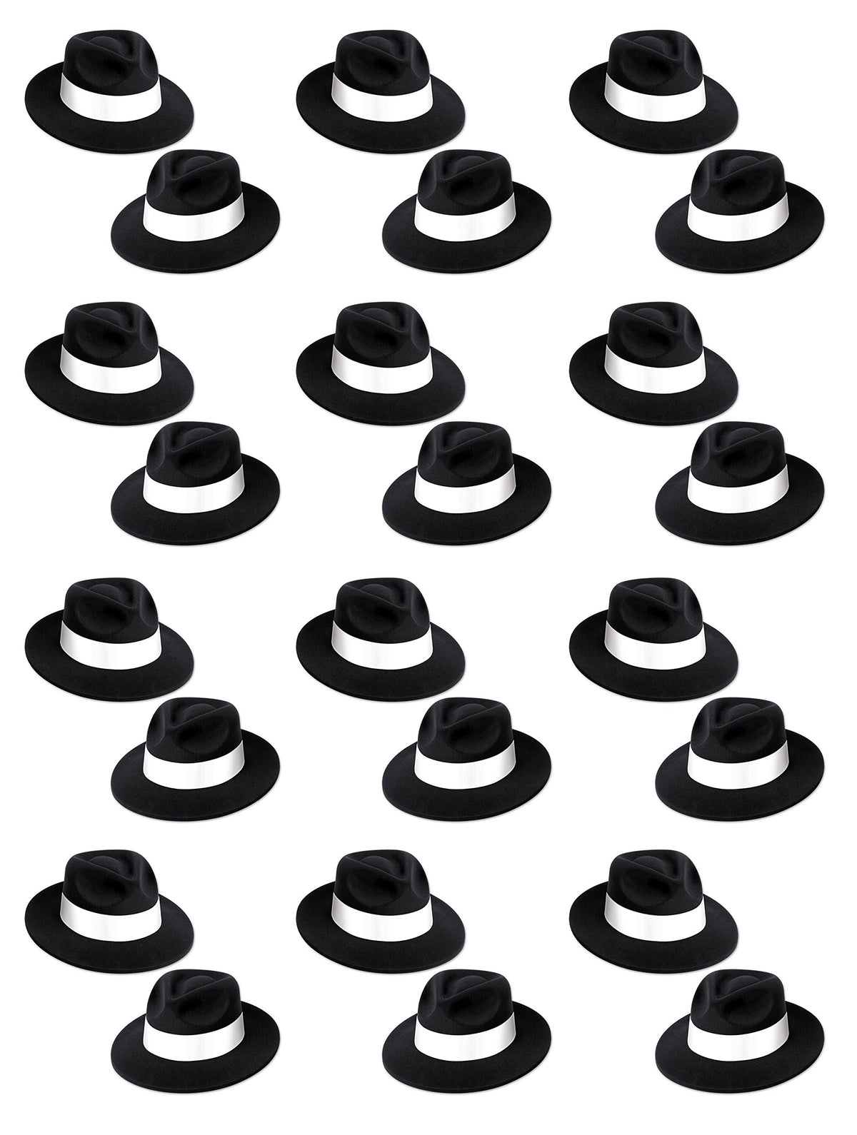Beistle 60057-25 25 Piece Velour Fedora Hats With Bands, Black/White