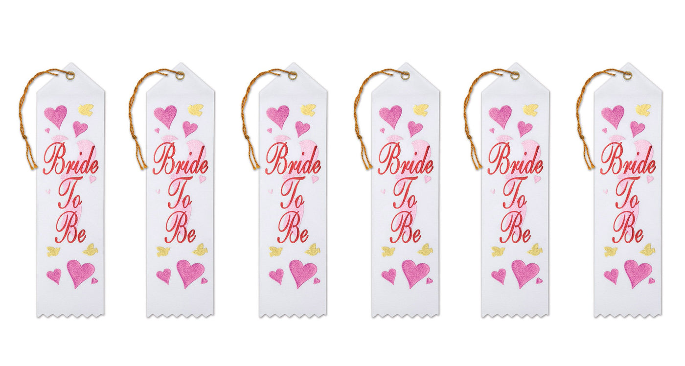 Beistle Ar128 Bride To Be Award Ribbons. Includes 6 Award Ribbons Per Package. These White Award Ribbons Are Printed With The Words 'Bride To Be' And Have Images Of Hearts And Doves. They Measure 2 Inch Wide By 8 Inch Tall.