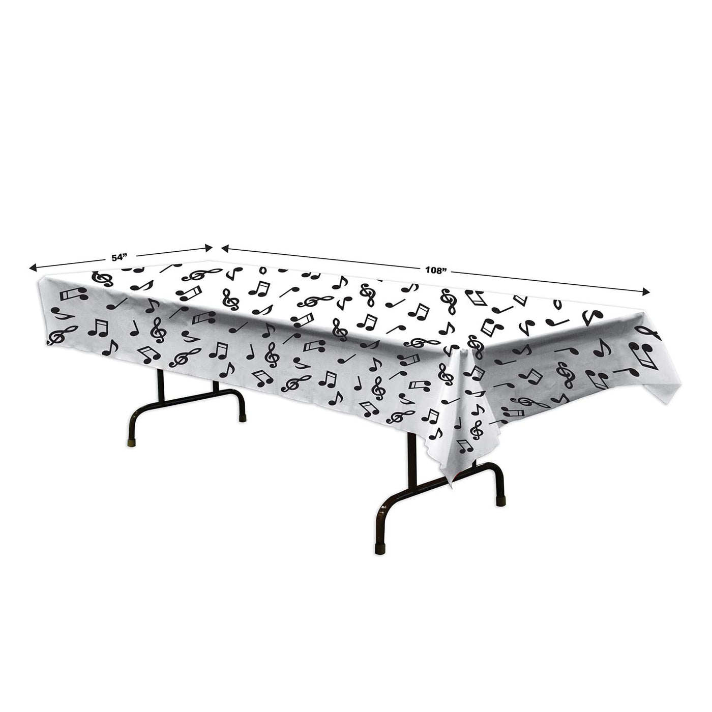 Beistle Musical Notes TablecoverThis music tablecover with black and white note designs will delight your guests for your next concert and music event. It measures 54 inches long by 108 inches wide and will fit standard rectangular tables. Made of plastic for easy disposal after your party is over. It's suitable for both indoor and outdoor events and pairs well with other musical decorations, such as musical instrument centerpieces, vinyl records, and music note balloons. Great for decorating for birthday bashes, music parties, concert, band, jazz-themed parties, singing events, and other themed gatherings. Use it on a table or place on a wall to create a fun Photo Backdrop!Party Planning Made FunFrom New Year’s Eve Parties, Halloween and Fall Festivities, Bachelorette Parties, Birthday Bashes, Graduation Get-Togethers, Baby Showers, Pool Parties, and more, our Novelty Items and Party Supplies are sure to add a pop of color and extra spice to any occasion.Celebrating life's events, one party at a time.The Beistle line includes over 8,000 items - products for nearly any event, celebration, or theme imaginable. Since 1900 our mission has remained the same: Create products using the finest materials and to the highest standards. Our customers, products, and employees make us who we are. We are The Beistle Company!
