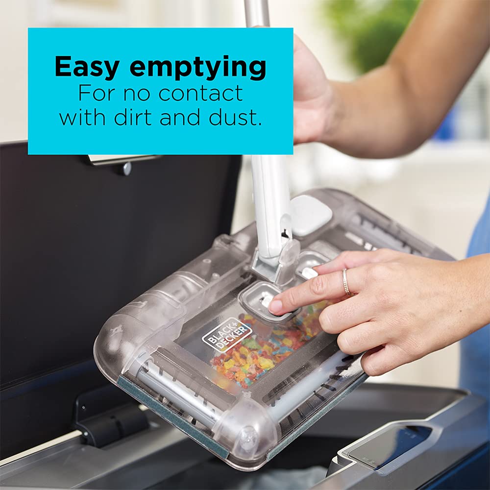 The Black+Decker Cordless Floor Sweeper Is A Total Pro At Making Minor Messes Vanish. Whether You Use It On Hard Floors Or Carpets, Its Lithium Ion Battery Delivers Up To 50 Minutes Of Sweeping Power. This One-Handed Sweeper Can Lie Flat To Reach Under Furniture And Shelves, But It Can Also Be Left In An Upright Position For Easy Storage And Quick Breaks. Its Designed With A Swivel Head That Maneuvers Smoothly Around Furniture. Plus, The Easy-Empty Dustbin Means You Wont Actually Have To Touch Dirt And Debris. When You Need To Recharge The Battery, A Built-In Led Indicates The Charge Status At A Glance.
