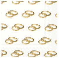 Q: Do these napkins come in different designs or colors?A: Yes, the napkins feature a beautiful pattern of gold rings on a white background, and you can find coordinating plates and napkins in various sizes from Ideal Home Range.