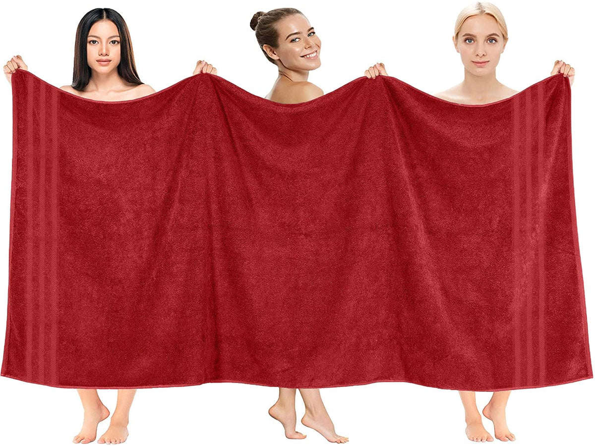 Q: What makes these towels different from standard bath towels?A: These towels are oversized, measuring 35x70 inches, which is larger than standard bath towels, offering full-body coverage and a more luxurious feel.