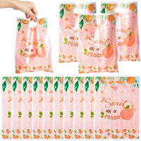 Haooryx 50Pcs Sweet As A Peach Party Favor Bags, Plastic Goodie Candy Bag Gift Wrapping Bags Birthday Gift Accessories Treat Bag
