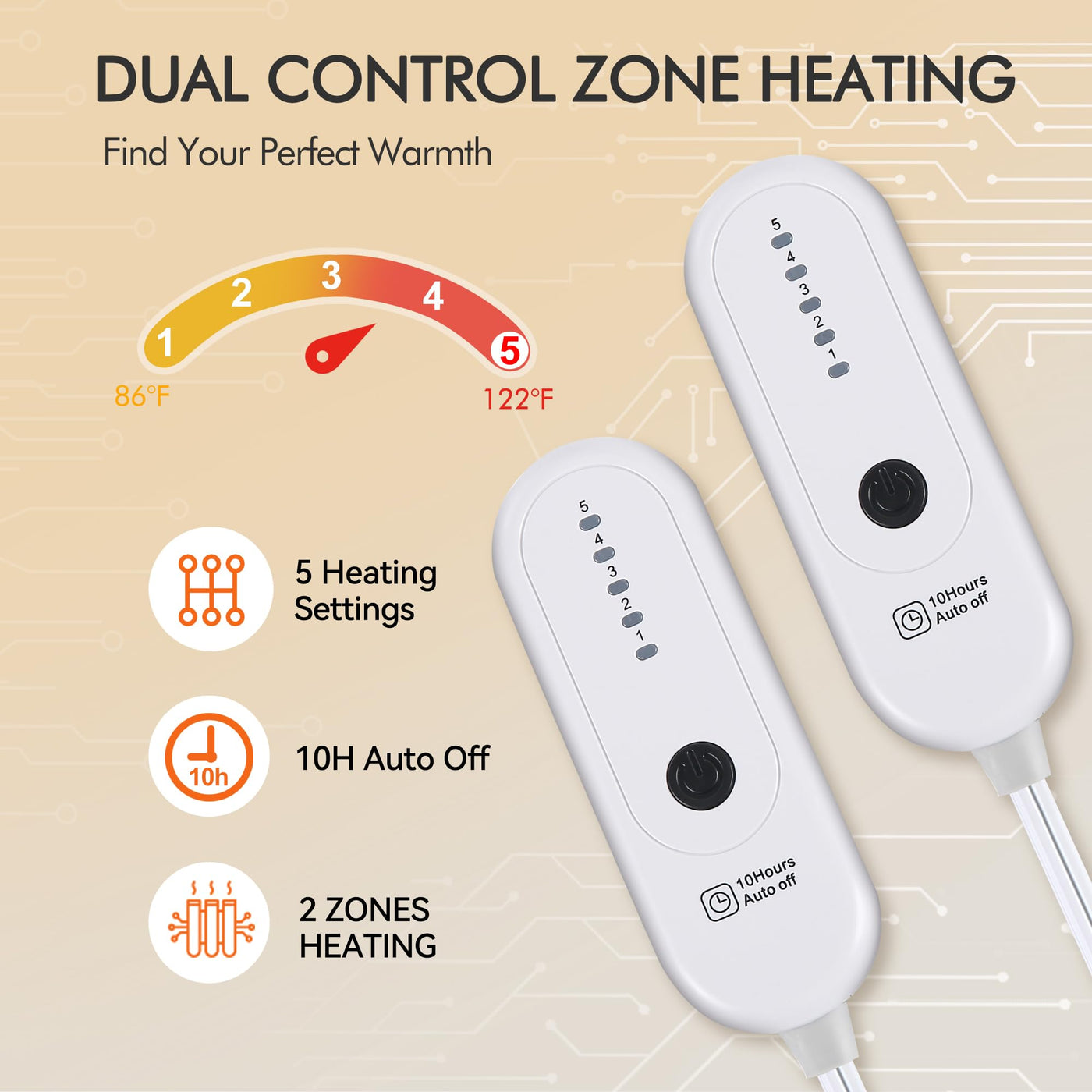 Heated Blanket Queen Size, 84''X90'' Queen Electric Blanket Dual Control With 5 Heating Levels & 10 Hours Auto Off, Electric Hea