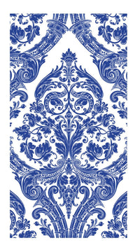 Q: What colors and designs are available for these napkins?A: The napkins feature a beautiful Grandeur print in dark blue against a white background, perfect for enhancing your table setting.